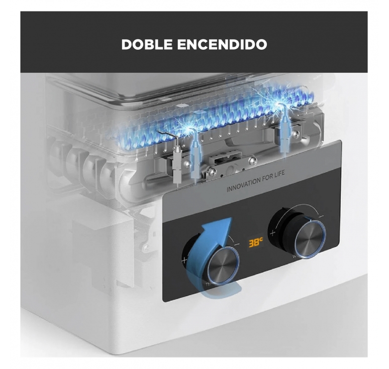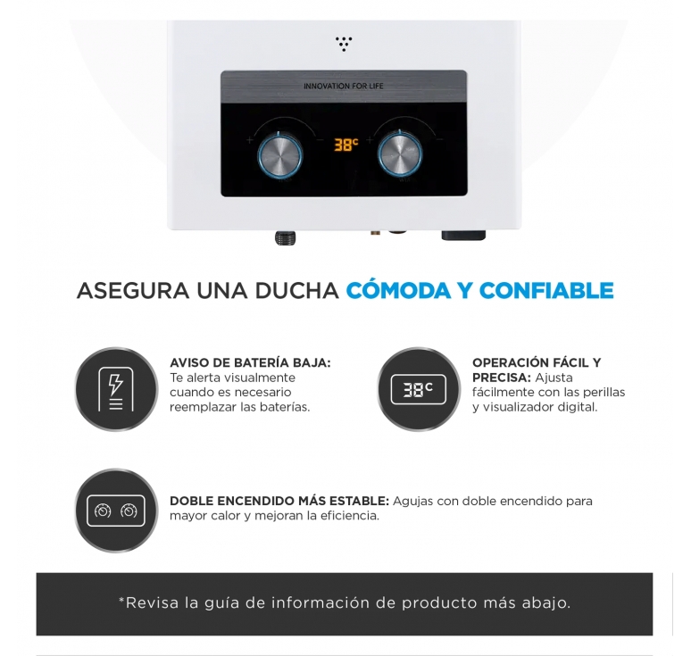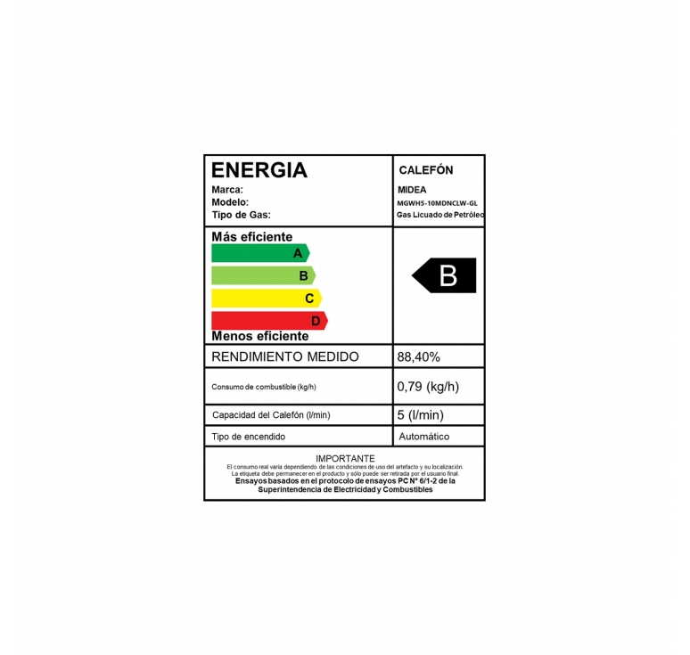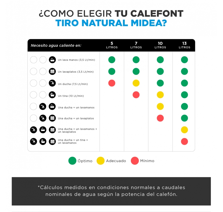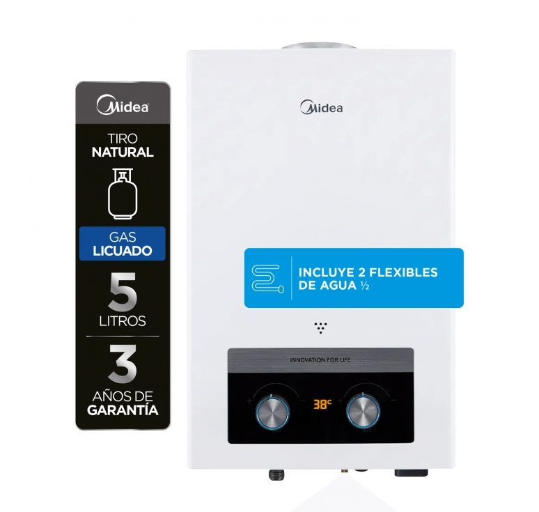 • Calefont Tiro Natural Midea Gas Licuado: compacto, eficiente y seguro.