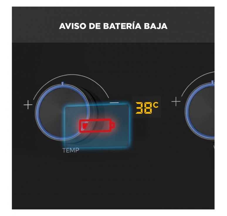 • Alerta de baterías, doble encendido y arranque con baja presión para uso continuo.