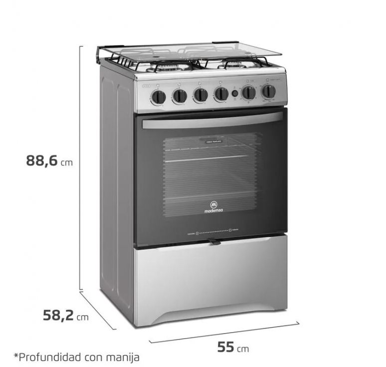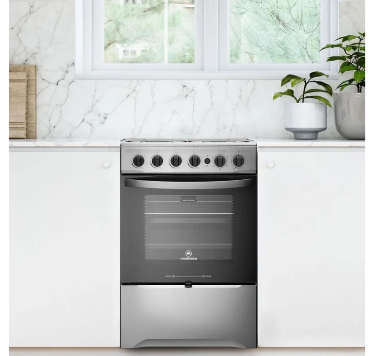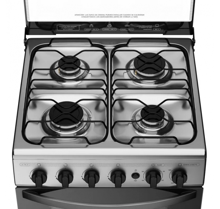 Prepara deliciosas comidas de manera práctica y rápida con la Cocina A Gas Mademsa 4 Platos Negro Con LimpiaFácil y Botón de Encendido M 775 ST. Debido a su Tecnología Limpia Fácil, el interior del horno posee un revestimiento especial, que evita que los alimentos se peguen, facilitando la limpieza. La mesa de esta cocina cuenta con una cobertura de zonas Independientes, que, al derramarse líquidos, no se esparcirán por el piso de la cocina. Debido al revestimiento esmaltado de las parrillas de alambrón, tiene más practicidad para la limpieza y mayor estabilidad para las ollas y sartenes. Para que enciendas los quemadores de forma práctica, la cocina dispone de Encendido Eléctrico de Botón. Una vez que termines de preparar tu comida, cierra la tapa de vidrio templado y utilízala como mesa para optimizar el espacio. Precisamente para darte más practicidad y autonomía, los quemadores laterales del horno son móviles, para que puedas colocarlos de la forma que prefieras. No te preocupes por perder el punto de cocción de tu comida, porque el timer mecánico del dispositivo Mademsa te avisa, solo prográmalo. El horno tiene una luz interior y una puerta con amplia visibilidad, lo que te permite observar el interior sin tener que abrir la puerta varias veces. * Todas nuestras cocinas y encimeras son nativas para Gas Licuado (GLP) y vienen preparadas para usarse con ese tipo de gas. Sin embargo, todas nuestras cocinas y encimeras pueden ser adaptadas para funcionar en óptimas condiciones con Gas Natural (GN). Esta modificación es un servicio es gratuito que entrega Mademsa. Para solicitar la conversión de un producto a Gas Natural (GN), debe comunicarse con nuestro S.A.I. (Servicio de Asistencia Integral) llamando al 600 600 53 53 o enviar un correo a soporte@mademsa.cl. El plazo de ejecución de este servicio es de hasta 72 hrs. hábiles desde el momento de la solicitud. IMPORTANTE: Para realizar la conversión a Gas Natural (GN) el producto ya debe estar instalado y conectado a la toma de gas según normativa S.E.C. vigente. De lo contrario, el técnico no procederá a hacer la conversión del producto.