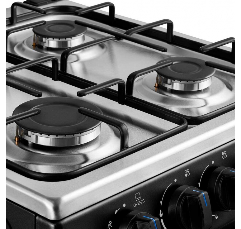 • 4 Quemadores sellados.• Horno de 62L con iluminación.• Doble entrada de gas y Encendido Eléctrico.• Disfruta de la seguridad que brinda su bloqueo infantil.• Tapa de Vidrio templado y cuerpo de Acero Inoxidable