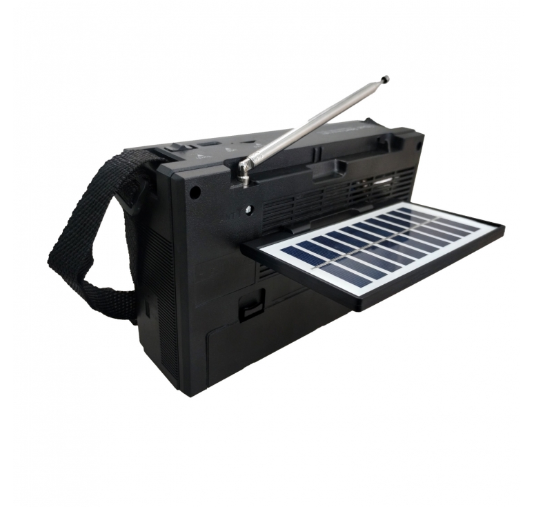 Esta radio portátil con panel solar te mantiene siempre conectado, sin necesidad de enchufes. Puedes cargarla de tres maneras: con energía solar, mediante su práctico puerto Type-C o utilizando dos baterías medianas para mayor autonomía. Disfruta de una experiencia completa con sus tres bandas (FM, AM y SW) y reproduce tu música favorita en formato MP3 gracias a sus entradas USB y microSD. Además, su antena telescópica garantiza una mejor recepción, y su linterna incorporada la hace ideal para situaciones de emergencia. Compacta, versátil y siempre lista para acompañarte.